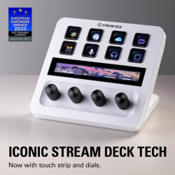 С бял елегантен дизайн и компактен размер от 118 x 84 x 25 мм, Stream Deck Plus е удобен за поставяне на бюро и лесно интегриране във вашата работна среда. LCD тъч панелът и персонализируемите бутони позволяват лесна настройка и бърз достъп до команди, а теглото от 270 г и 24-месечната гаранция гарантират издръжливост и сигурност при ежедневна употреба.