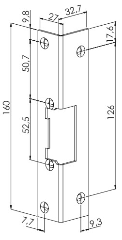 Къса ъглова челна планка подходяща за насрещници серия 41/50/52/54/99TOP. Размери: 160x27x32.7mm. Сив цвят, прахово боядисана.