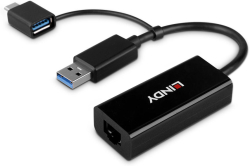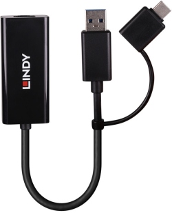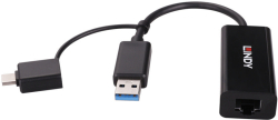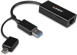 LINDY LNY-43412, USB 3.2 към Gigabit Ethernet, 1000 Mbps, USB-A/USB-C, черен