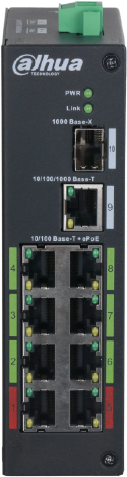 Суич Dahua LR2110-8ET-120 е управляем Layer 2 PoE суич, създаден за надеждно мрежово свързване и захранване на устройства през Ethernet в системи за видеонаблюдение и IP мрежи.