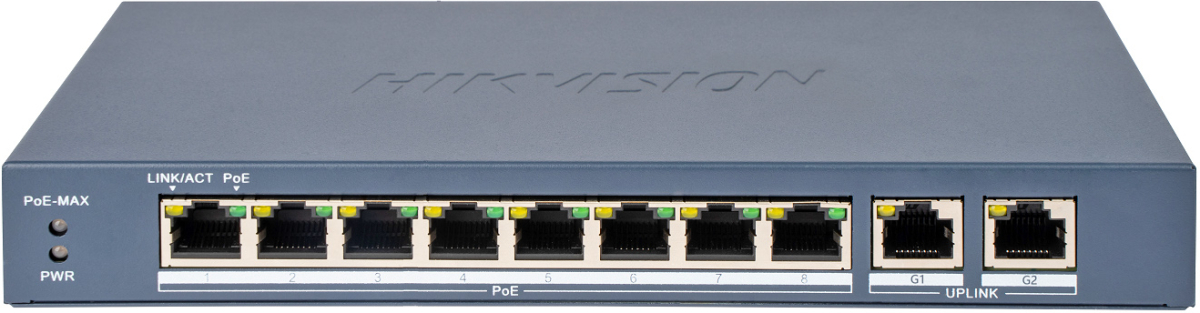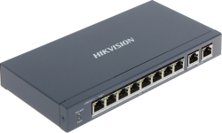 HIKVISION DS-3E0310P-E/M(B) е 10-портов PoE мрежов комутатор, създаден за надеждно захранване и свързване на IP устройства в малки и средни системи за видеонаблюдение и мрежова инфраструктура.