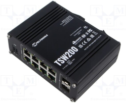 TELTONIKA NETWORKS TSW200 Industrial PoE+ Ethernet Switch е индустриален PoE+ суич с гигабитови портове и SFP слотове, създаден за надеждна работа в тежки условия. Подходящ е за изграждане на стабилни мрежи в индустриална автоматизация, видеонаблюдение и отдалечени обекти.