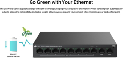 TP-Link LS110P, 10-портов 10-100Mbps настолен комутатор с 8 PoE+ порта