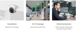 | Ethernet портове: | 8× 10/100/1000 Mbps PoE+ RJ45 (802.3af/802.3at) |