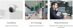 | PoE стандарт: | PoE (802.3af) и PoE+ (802.3at) |