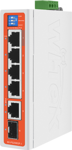 Wi-Tek WI-PS206GF-I V2 е 6-портов индустриален PoE мрежов комутатор, създаден за надеждно захранване и свързаност в тежки условия. Подходящ е за IP камери, безжични точки за достъп и други PoE устройства в индустриални и външни инсталации.