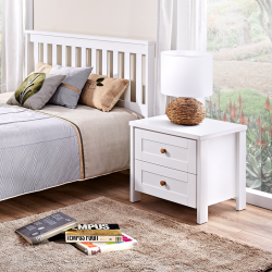 С две чекмеджета и механизми за плавно затваряне, Нощно шкафче OSLO осигурява тихо и комфортно използване, като същевременно помага да държите най-необходимите вещи винаги под ръка. Подходящо е както за модерни интериори, така и за по-класически обзавеждания, като допълва цялостната визия на спален комплект или самостоятелно обзавеждане.
