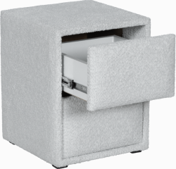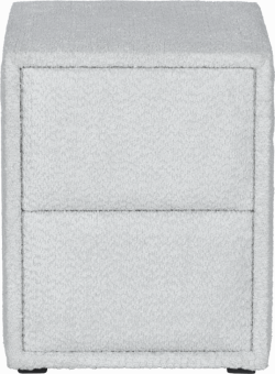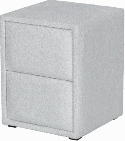 С два чекмеджета, Нощно шкафче за спалня CANCUN - сребърен AN предлага достатъчно място за съхранение на лични вещи, книги и аксесоари, така че всичко необходимо да е на една ръка разстояние. Комбинацията от дамаска и ПДЧ допринася за елегантна визия, а фабричното сглобяване спестява време и усилия при поставяне.