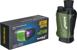 Далекогледът за нощно виждане Levenhuk Atom Digital DNM50 е компактен цифров уред за нощно виждане с обхват до 200 m в тъмно време и вградено записващо устройство за снимки и видеоматериали. Функциите на уреда са полезни при нощен лов, многодневни пешеходни преходи и наблюдение на терена. Уредът може да се използва през деня и през нощта. Има инфрачервено осветление със 7 нива яркост за извършване на наблюдение на тъмно. Има оптично увеличение 4х и цифрово увеличение 1–5х.