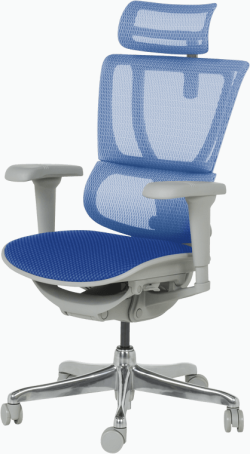 Ергономичен стол ERGOHUMAN IOO ULTRA - сива рамка - син е създаден за комфорт и стабилна опора при продължителна работа пред компютър. Комбинацията от дишаща мрежа и прецизни настройки помага да поддържате правилна стойка през целия ден.