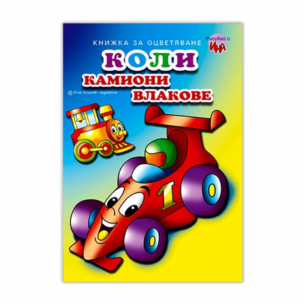 Книжка за оцветяване - Коли, Камиони, Влакове