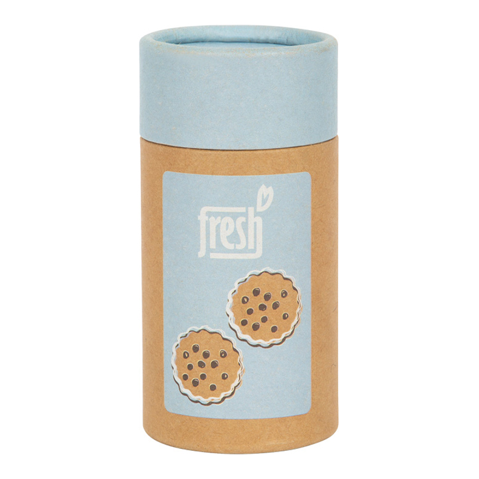 - Тези тестени изделия-играчки се предлагат в цилиндрична опаковка за многократно затваряне, изработена от необработен естествен картон.