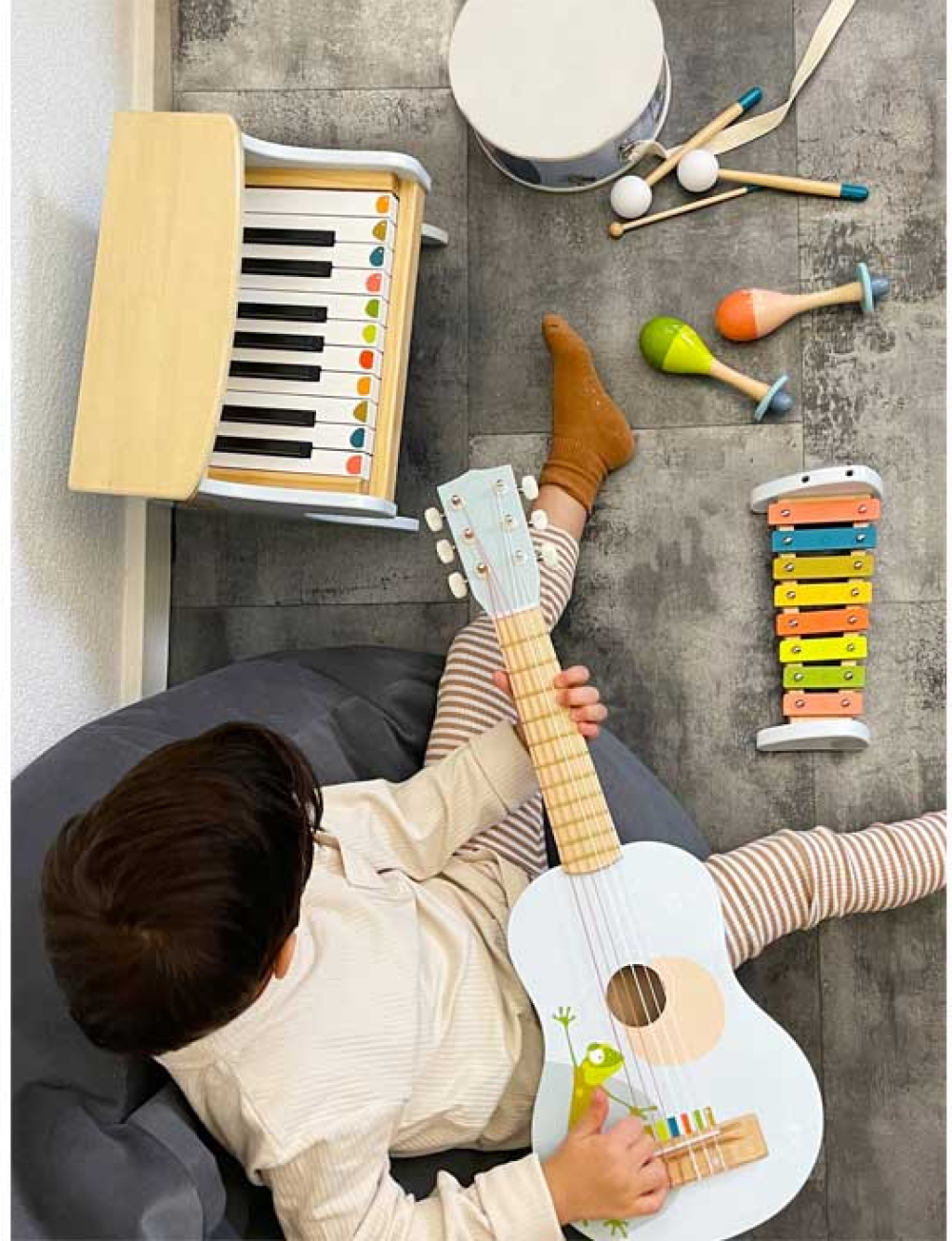 - Развива музикалните умения и креативността на децата чрез интерактивно свирене.
