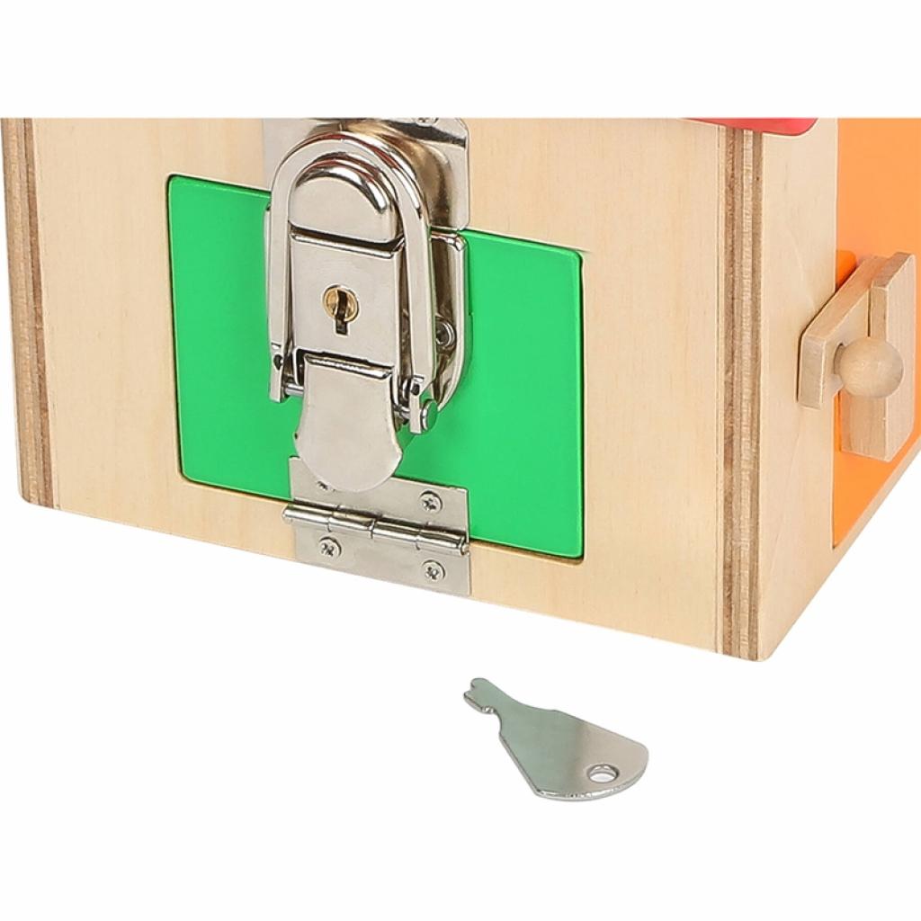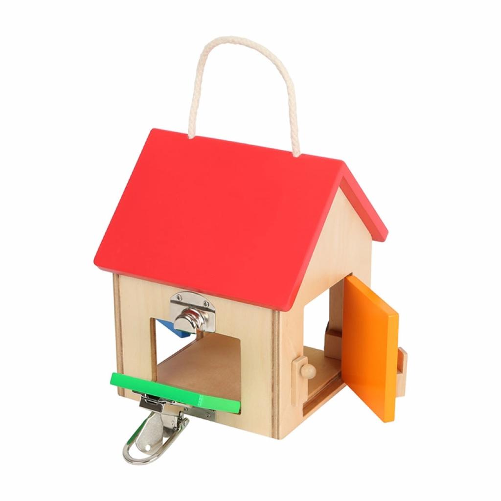 Играй и се учи! Със своите различни ключалки и брава, тази заключена къща, изработена от FSC® 100% сертифицирана дървесина, насърчава развитието на детската концентрация и фините двигателни умения. Много ежедневни ситуации могат да се практикуват по интересен начин и да се изпробват благодарение на къщата. Компактните размери и висококачествена изработка я правят удобна за пренос и съхранение.