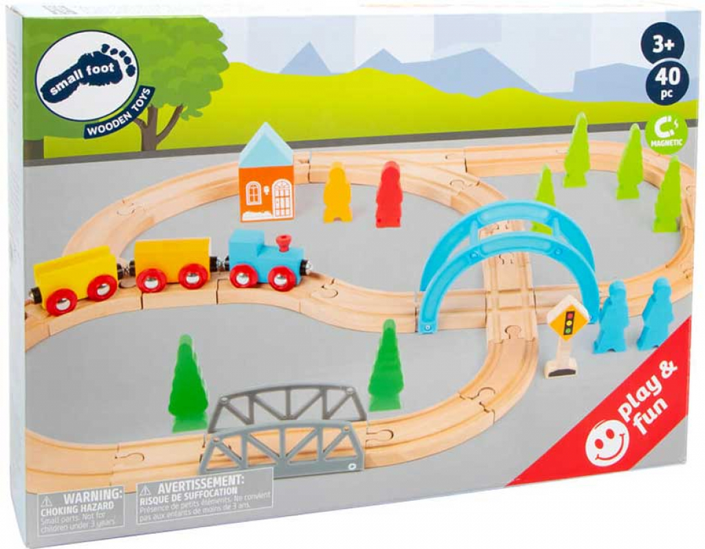 Small Foot Влакче с релси, дървено 45 х 60 х 9.5 cm, 40 части
