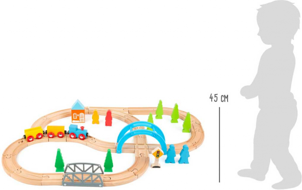 С този дървен комплект, младите железничари със сигурност ще се пренесат в света на влаковете и забавлението ще е гарантирано!