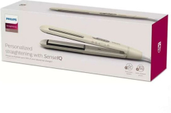 Philips 8000 Series е стилизиращ уред с електронен терморегулатор и температура, която може да се настройва от 120º до 230º C с 14 нива. Плочите са широки 25 х 110 мм и се загряват бързо – само за 15 секунди. Уредът разполага с йонизираща функция, подвижни плочи и технология SenseIQ, която адаптира температурата спрямо състоянието на косата за по-щадящо изправяне. Включени са калъф и термозащитна капачка, а удобството е допълнено от LED дисплей, въртящ се кабел и автоматично изключване след 30 минути. Цветовото изпълнение е в бял и златист нюанс.