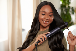 Пресата за коса Philips серия 7000 модел BHS752/00 комбинира технология ThermoShield с грижа чрез минерални йони, за да осигури здравословно изправяне. Максималната температура достига 230°C и има 12 настройки за нагряване, а плочите са напоени с керамично арганово масло за допълнителна защита на косата. Уредът има плаващи плочи с дължина 105 мм и ширина 25 мм, които осигуряват равномерно изправяне и къдрене. Времето за загряване е бързо – 30 секунди, а удобството се допълва от LED дисплей, въртящ се кабел и функция за автоматично изключване. В комплекта е включена термоустойчива постелка за разгъване, а дизайнът е в наситено лилав металик.
