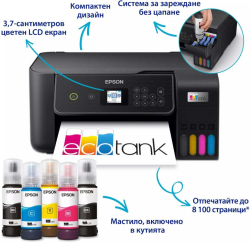 Epson EcoTank L3280 е компактно 3-в-1 устройство за цветен мастиленоструен печат, сканиране и копиране, създадено за бърза и удобна работа у дома.