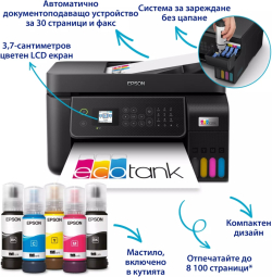 Epson EcoTank L5310 е компактно 4-в-1 мултифункционално устройство за печат, сканиране, копиране и факс, създадено за дома и малкия офис.