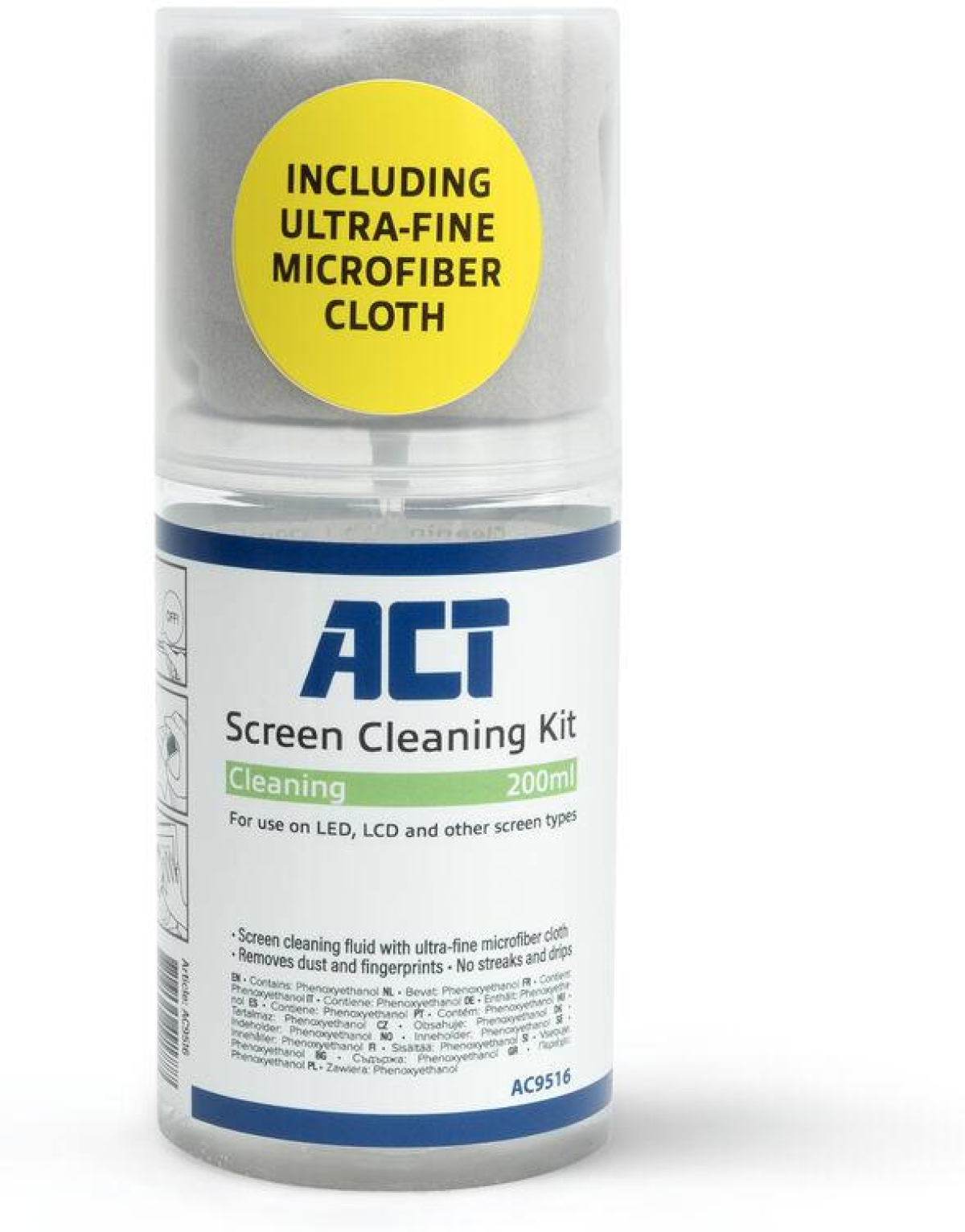 ACT Спрей за почистване на екрани с микрофибърна кърпа,200мл