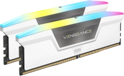 CORSAIR VENGEANCE RGB DDR5 64GB (2 x 32GB) DDR5 6000 CL30-36-36-76 1.40V Intel XMP & AMD EXPO - White е високопроизводителен комплект DDR5 RAM, създаден за модерни гейминг и професионални конфигурации. Комбинира висока честота, ниска латентност и впечатляващо RGB осветление в елегантен бял дизайн.