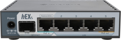 С 5 Gigabit Ethernet порта, PoE-in на порт #1 и PoE-out на порт #5, MikroTik hEX S позволява гъвкаво изграждане на LAN/WAN/bridge конфигурации и лесно захранване на съвместими устройства. Добавеният 2.5G SFP cage осигурява възможност за високоскоростни оптични връзки, а USB 2.0 портът разширява опциите за свързване на периферия.