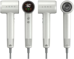 Високоскоростният сешоар AENO HD4 комбинира мощност от 1500 W с интелигентна термозащита и йонна технология, за да осигури бързо, щадящо и професионално сушене. Със своя безчетков мотор, достигащ до 110 000 об/мин, и въздушен поток със скорост 100 км/ч, той гарантира ефективна и тиха работа. Устройството предлага 10 режима на работа, включително автоциклични програми с динамична смяна на температурата на всеки 4 секунди. LED дисплеят улеснява контрола на настройките, а магнитните дюзи позволяват бърза и удобна смяна. Компактният дизайн и включената пътна чанта го правят подходящ и за пътуване.