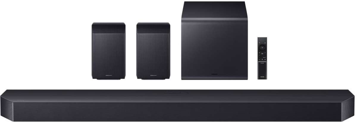 С конфигурация 11.1.4 канала и комплект от саундбар, безжичен субуфер и два безжични задни говорителя, системата изпълва стаята с детайлен и мощен звук. Технологии като Q-Symphony, SpaceFit Sound Pro и Active Voice Amplifier подобряват синхрона с телевизора, адаптират звука спрямо акустиката и правят диалозите по-ясни.