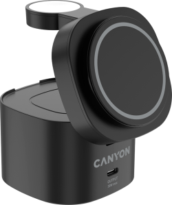 Canyon 4 in 1 Wireless Charging Stand, 30W max, Size: 70x70x70.3mm, weight: 414g, with 65W charger and 1M cable, black