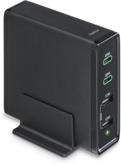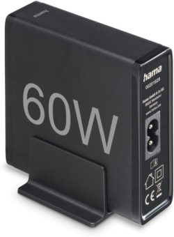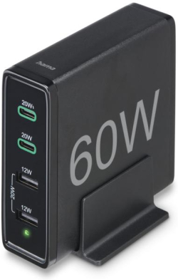 HAMA Зарядна станция 4 порта, 60W, 2x USB-C, 2x USB-A, PD, Fast Charge, черен