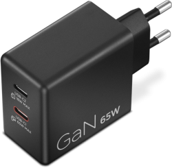 С обща мощност до 65 W и два USB-C порта, зарядното позволява удобно захранване на повече от едно устройство, като съчетава висока производителност и преносим дизайн. Това го прави отличен избор за потребители, които търсят бързо зареждане и минимален обем в багажа.