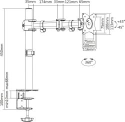 DIGITUS DA-90361 е универсална стойка за плот за 1x LCD монитор, създадена за гъвкаво и удобно позициониране на екрана на работното място. Подходяща е за монитори 15–27" и натоварване до 8 kg, с поддръжка на VESA 75x75 и 100x100.