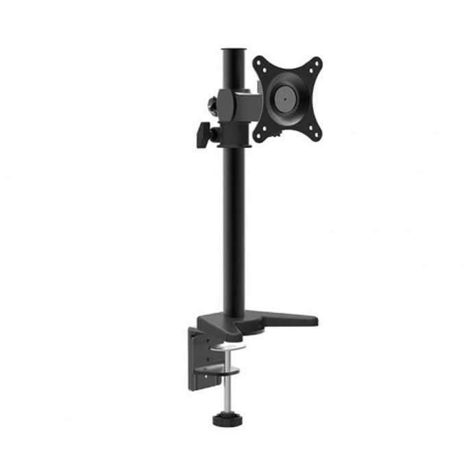 Открийте ефективното решение за организиране на работното си пространство с DS901 стойка за един монитор. Подходяща за дома и офиса, тази универсална и стабилна стойка позволява лесното монтиране на монитор, освобождавайки повече място върху бюрото и осигурявайки оптимален ъгъл на гледане за максимален комфорт през целия ден. Регулируемата конструкция позволява плавно настройване на височината и наклона, което намалява умората на врата и очите. Благодарение на здравата си изработка и съвместимост с широка гама от монитори, DESK STAND DS901 е идеален избор за всеки, който търси по-добра ергономия и продуктивност. Монтажът е бърз и лесен, без необходимост от специални инструменти. Съвместима с VESA стандарта, тази стойка гарантира надеждно закрепване на вашия монитор.