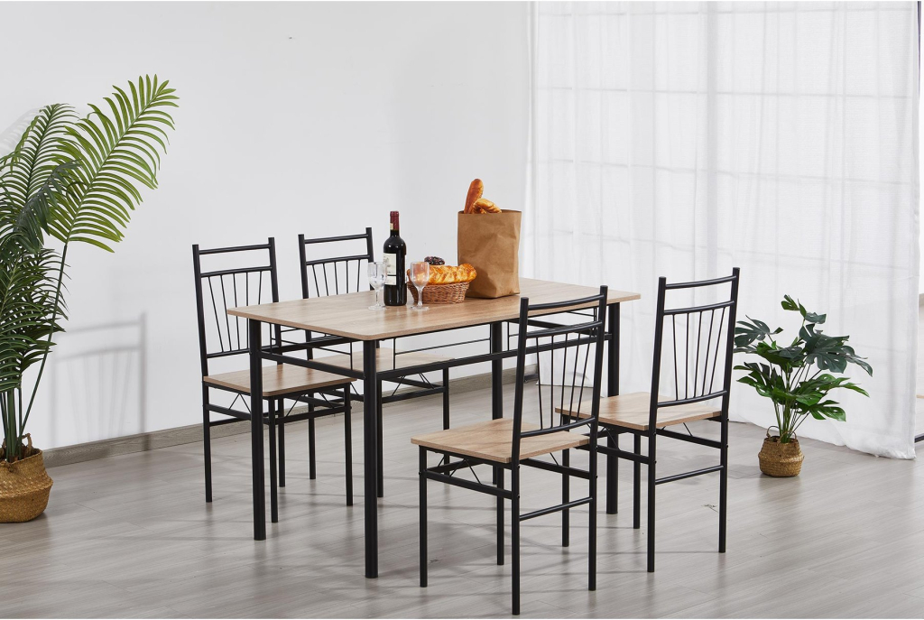 Комплект маса с 4 стола RFG Style, ПДЧ, дъб сонома, черен метал