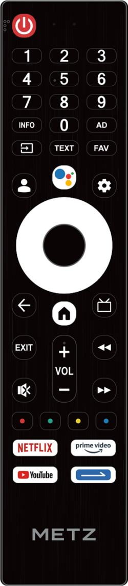 С Full HD резолюция и 40-инчов (101 см) екран, METZ Телевизор 40MTF6000Z 40" FullHD предлага ясна и детайлна картина за телевизия, филми и стрийминг. Google TV събира приложенията на едно място и улеснява откриването на съдържание, а вградената поддръжка на Google Assistant позволява удобно гласово управление.