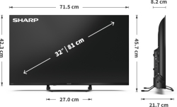 Sharp 32HF3865E, 32" QLED Google TV, FHD 1920x1080 Frameless, 1 000 000:1, DVB-T-T2-C-S-S2, HDR10, Speaker 2x8W