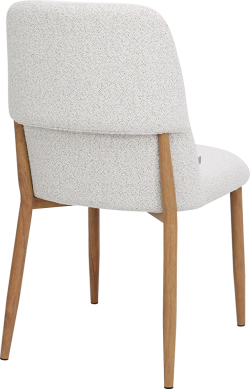 Меката дамаска в нежен кремав нюанс придава уют и лесно се комбинира с различни интериорни стилове, а праховобоядисаният метал на краката осигурява надеждна опора при ежедневна употреба. Със своята балансирана височина на седалката столът е удобен както за стандартни трапезни маси, така и за по-дълги вечери с гости.