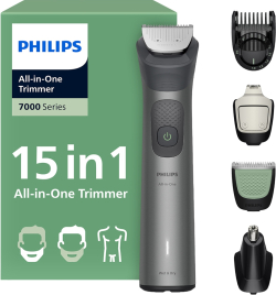 PHILIPS All-in-One Trimmer s7000 15in1 е универсален тример за цялостна грижа – лице, коса и тяло, подходящ за суха и мокра употреба. С богат комплект приставки получавате прецизно оформяне и поддържан вид у дома.