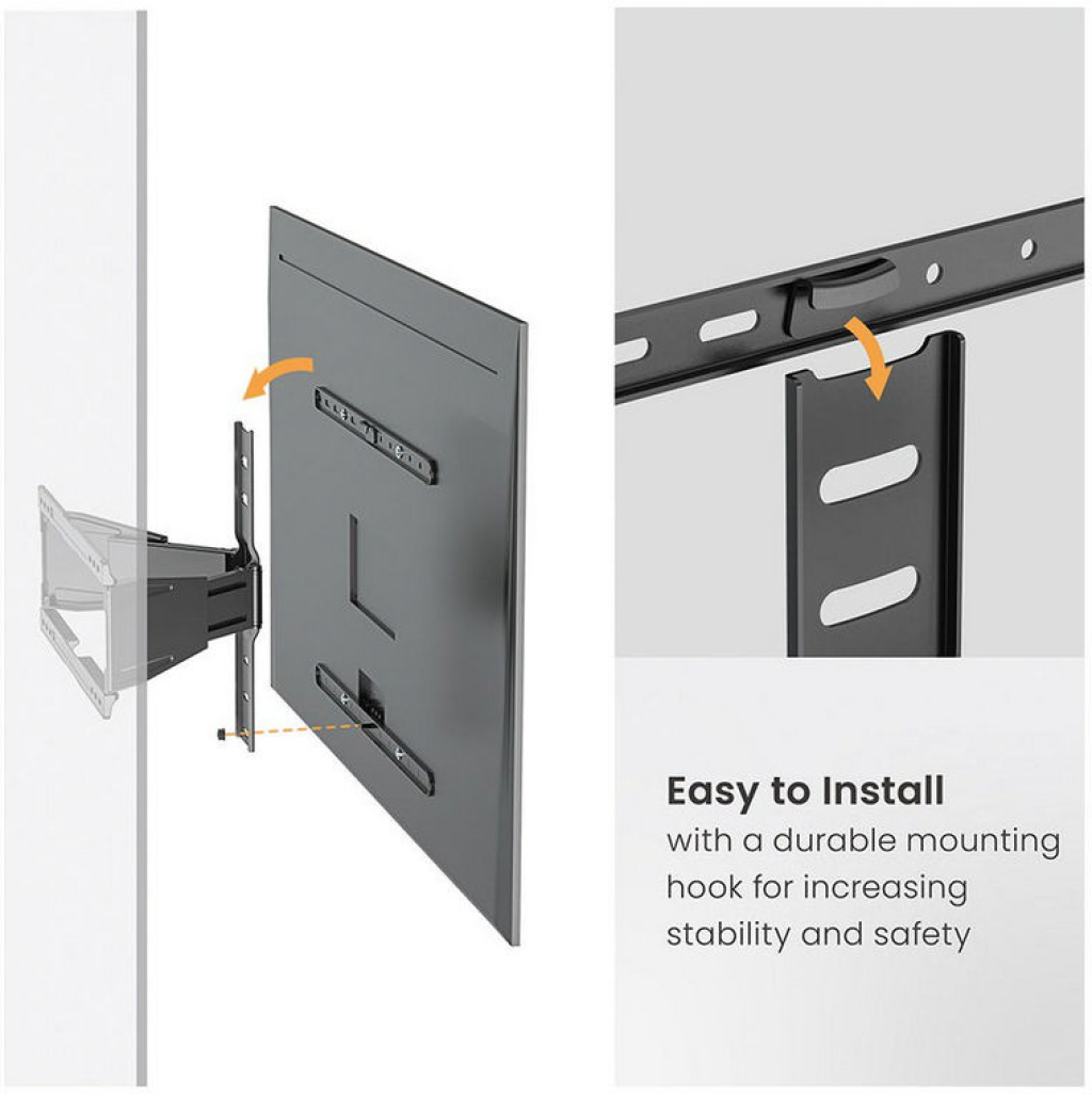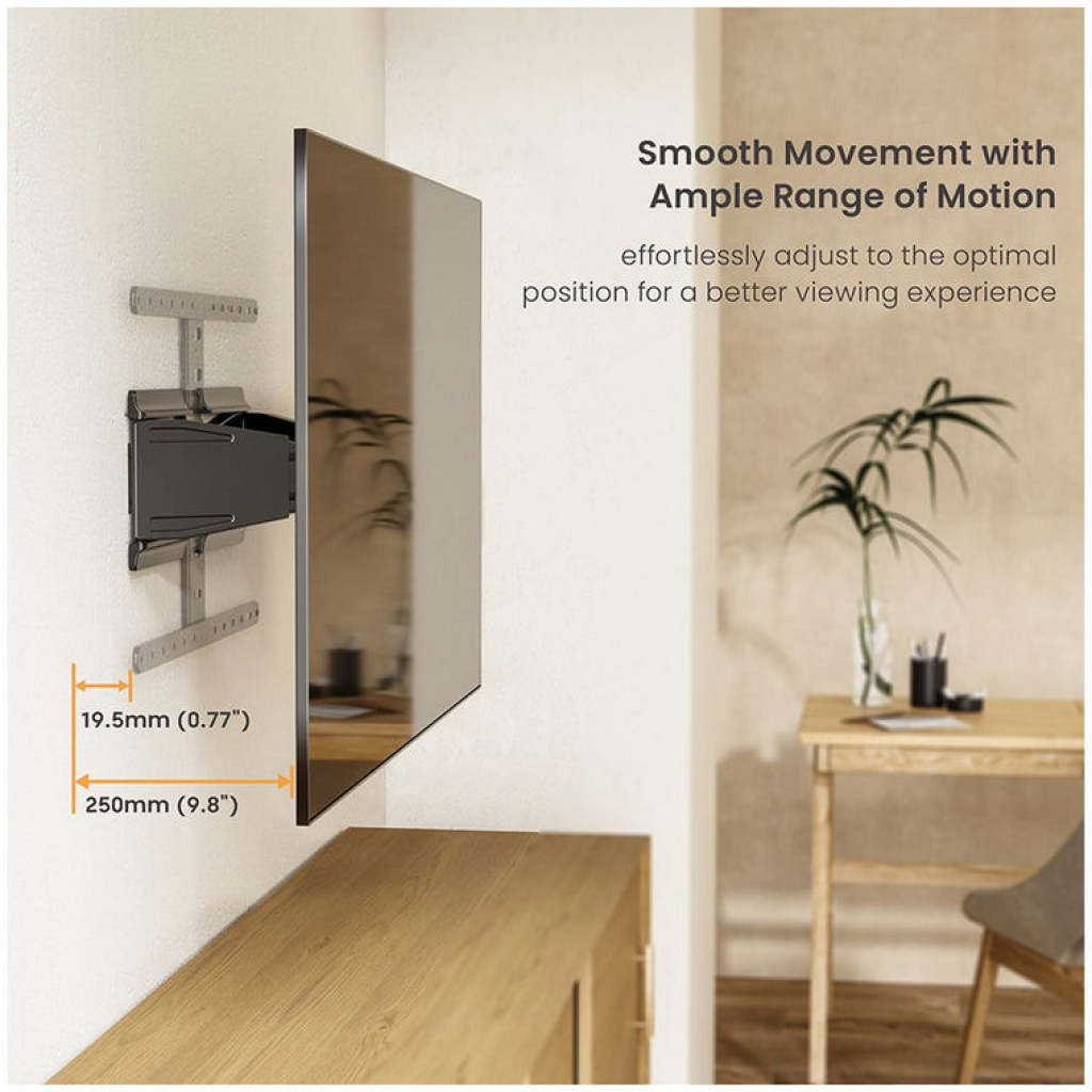 Благодарение на минималното разстояние до стената между 19,5 мм и 250 мм стойката изглежда почти невидима във Вашия дом или офис, като същевременно гарантира стабилност и стилен външен вид. Многофункционалният дизайн позволява накланяне, хоризонтално подравняване и завъртане за идеалния ъгъл на гледане, независимо от мястото на поставяне. Интегрираната система за управление на кабели поддържа всичко чисто и добре организирано, без видими и неестетични кабели.