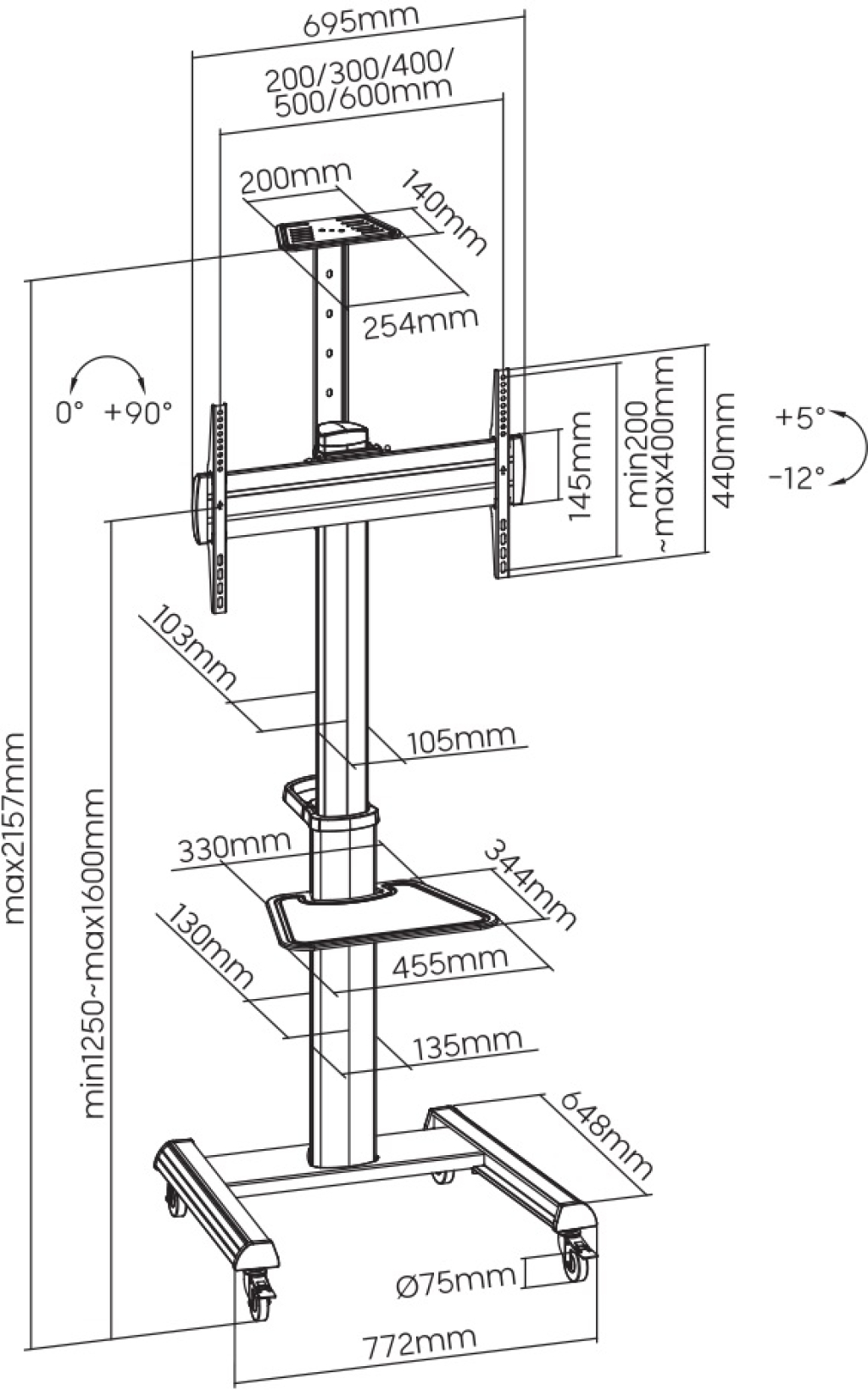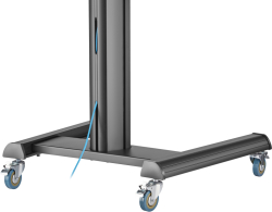 Стойката разполага с управление на кабелите за по-подредена визия и рафт с регулируема височина, подходящ за аксесоари. Подходяща е за широк диапазон екрани и VESA стандарти, което я прави универсална стойка за телевизор и практично решение за TV стойка на колела в различни среди.