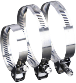 Stainless steel band applied with suspension clamps, anchor clamps, and hooks, on dead end and intermediate routes, of main or end use electrical connections.