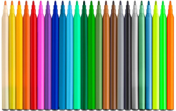 Включва стандартни, металикови и неонови цветове.