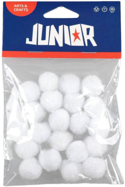 Помпони за декорация Junior, 20 mm, бели, 20 броя