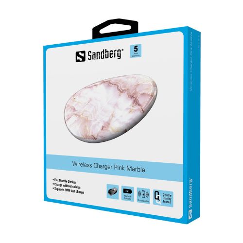 Със Sandberg Wireless Charger Pink Marble можете да зареждате своя смартфон изцяло безжично! Само поставете своя смартфон върху стилната поставка за зареждане. Това е всичко! Вашият телефон ще започне незабавно да се зарежда без да е необходимо да прикрепяте каквито и да било кабели към него. Зарядното устройство поддръжка QI съвместими смартфони.✔ Плосък мраморен дизайн.✔ Зареждайте без кабели.✔ Поддържа 10W бързо зареждане.