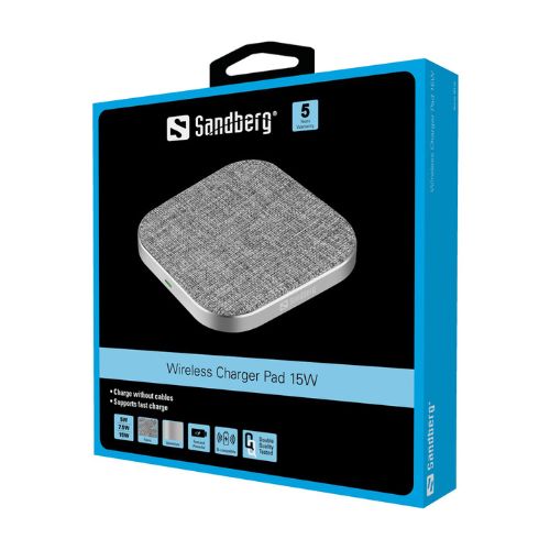 Стилната подложка за безжично зареждане на Sandberg ви позволява да зареждате вашия смартфон напълно безжично. Елегантният дизайн включва текстилна повърхност, покрита с плат, която лесно се слива с модерния интериор, а използването на зарядното устройство е толкова лесно, колкото просто да поставите телефона си върху подложката за зареждане. Зарядното устройство поддържа QI-съвместими смартфони и има обхват на зареждане до 10 mm. 5 години гаранция.Стилна подложка за безжично зареждане, която поддържа QI-съвместими смартфони и има обхват на зареждане до 10 mm. 5 години гаранция.