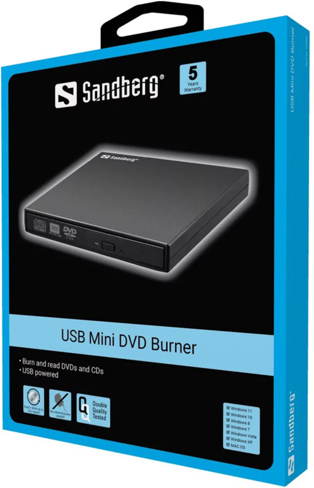 Оборудвайте компютъра си с USB Mini DVD Bзаписвачка на Sandberg, за да записвате и четете CD и DVD. Лесно свързано чрез USB порт, устройството работи добре като мобилен DVD плейър, без да изисква допълнителен софтуер.Мини DVD записващо устройство, свързано чрез USB порт.