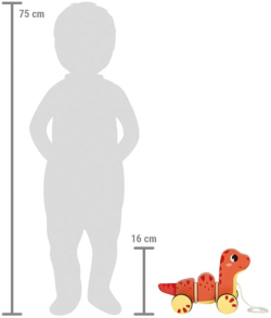 Дървеният динозавър за дърпане от Small Foot е чудесен спътник за малките откриватели, които правят първите си стъпки в света на движението и координацията. Изработен от висококачествена дървесина и боядисан с безвредни бои, този симпатичен динозавър ще се превърне в любим приятел на всяко дете.