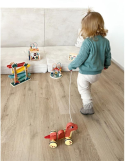 Този тип дървени играчки за бутане не само забавляват, но и подпомагат развитието на моторните умения, баланса и пространствената ориентация. Когато детето дърпа играчката със здравия шнур, то развива своята координация между ръцете и краката, както и мускулната сила.