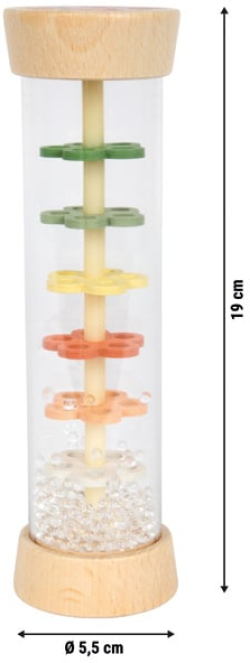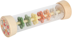 Little Friends внася магията на дъждовните капки директно в детската стая – визуално и акустично! Малките топчета вътре в пръчката за дъжд създават приятно, нежно потракване, напомнящо падащ дъжд, докато се стичат през шест цветни перфорирани пластини във формата на цветя.